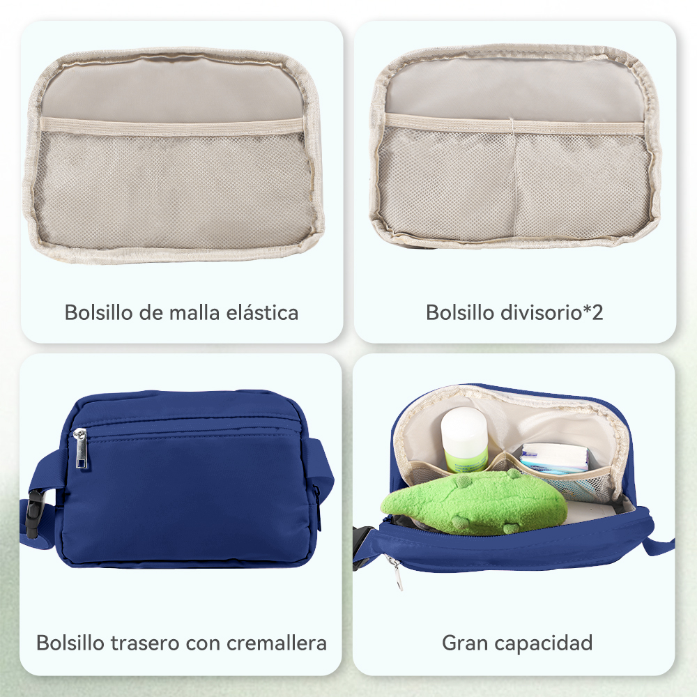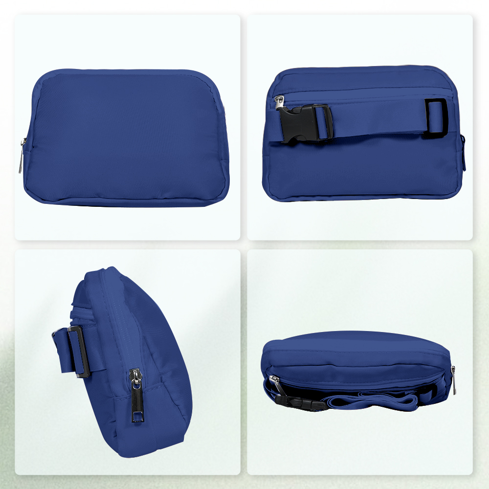 - La correa ajustable le permite ajustar la longitud de la riñonera depende de su demanda. Además, el banano cruzado le permite llevarse de distintas formas y liberar sus manos, como usarlo alrededor de la cintura, sobre el hombro o cruzado. La cremallera suave es más cómoda de usar.