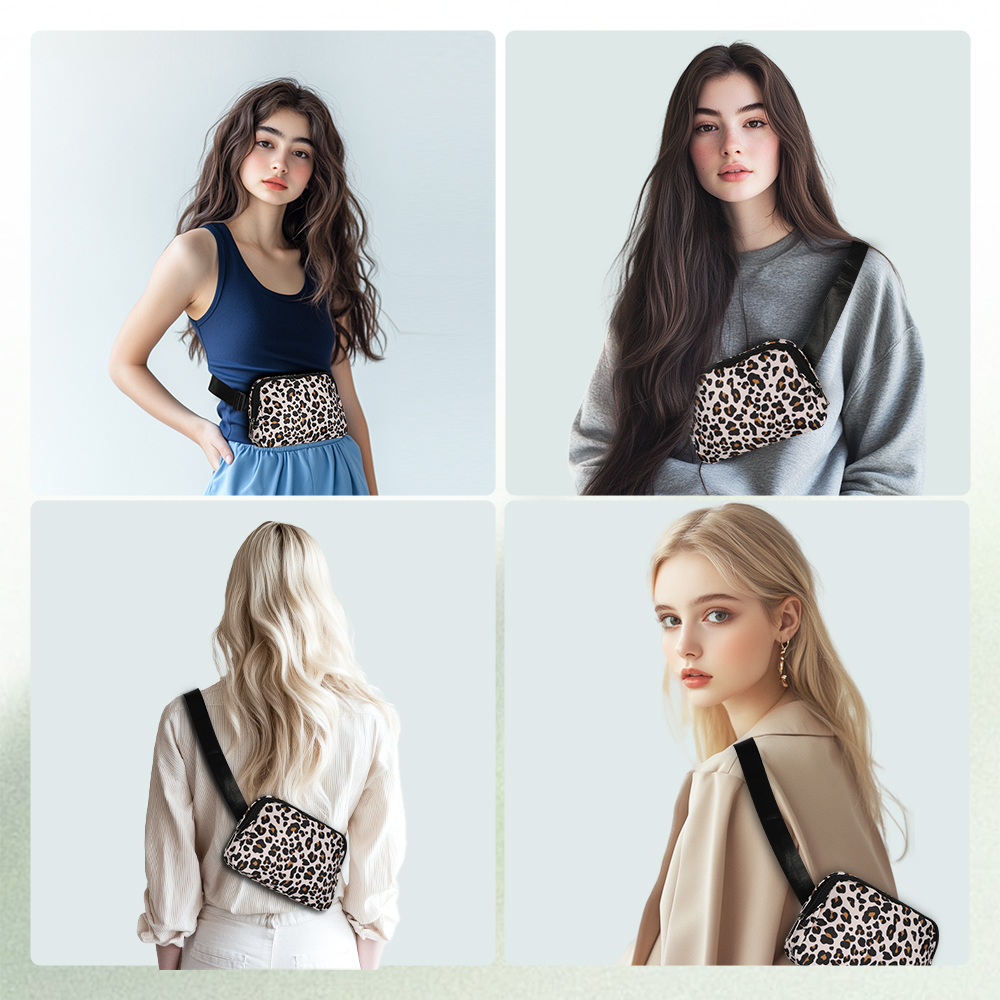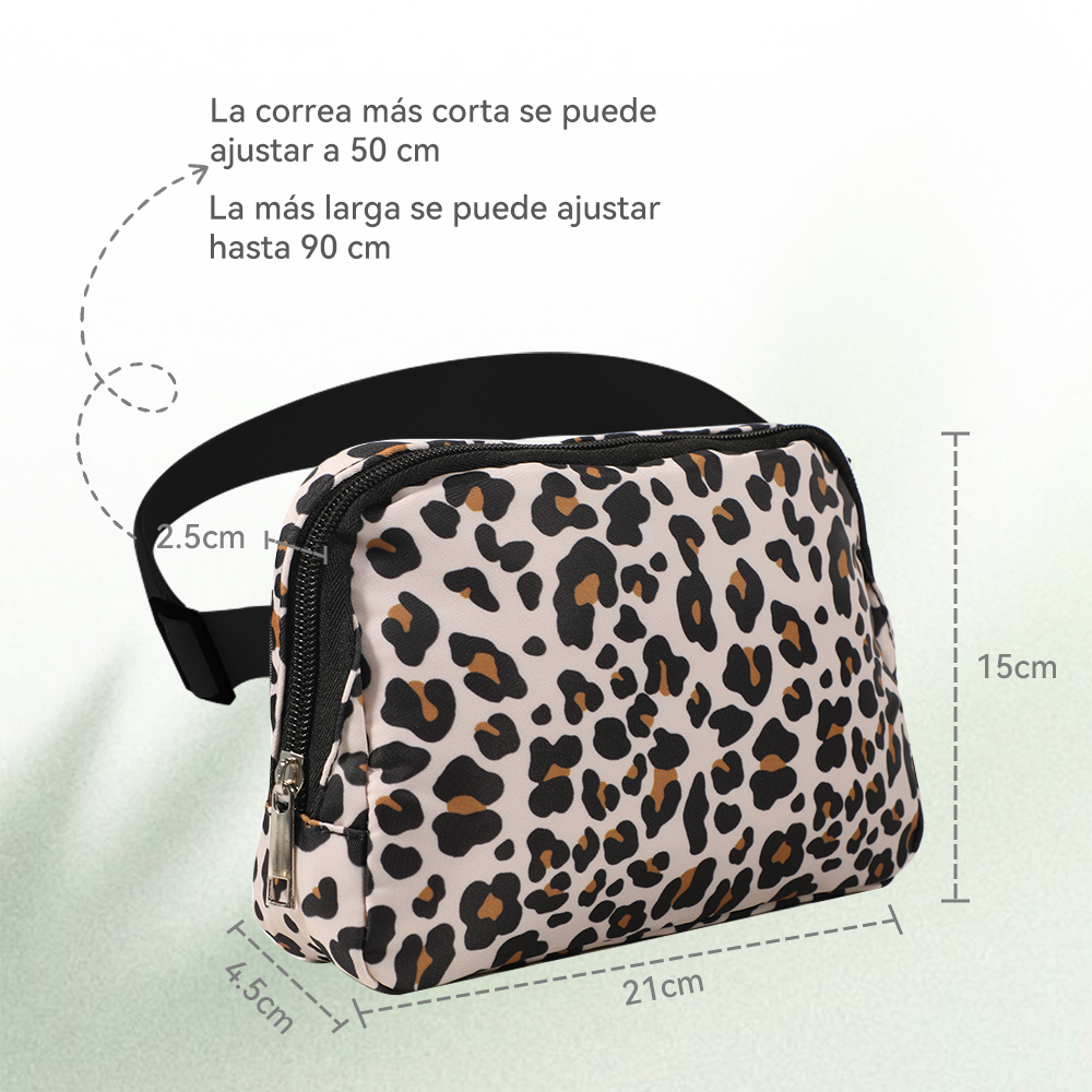 - La correa ajustable le permite ajustar la longitud de la riñonera depende de su demanda. Además, el banano cruzado le permite llevarse de distintas formas y liberar sus manos, como usarlo alrededor de la cintura, sobre el hombro o cruzado. La cremallera suave es más cómoda de usar.