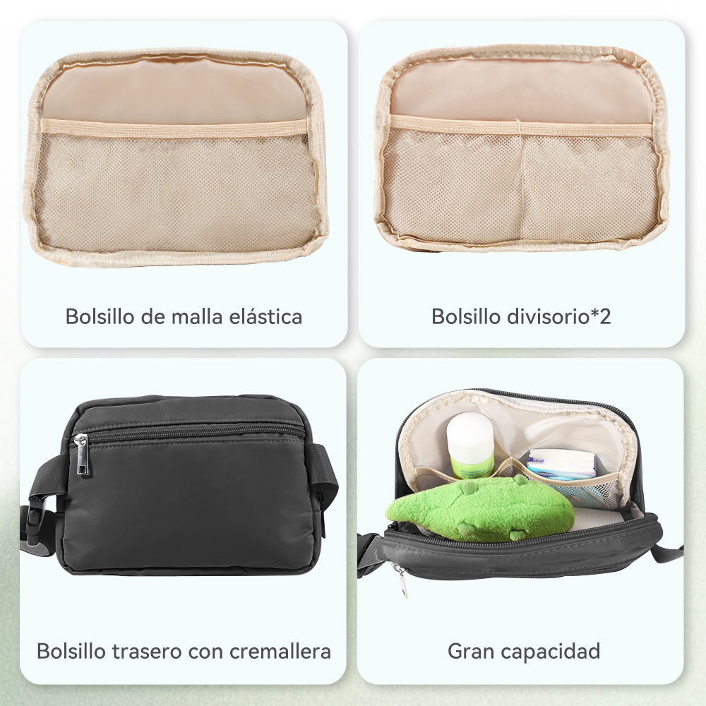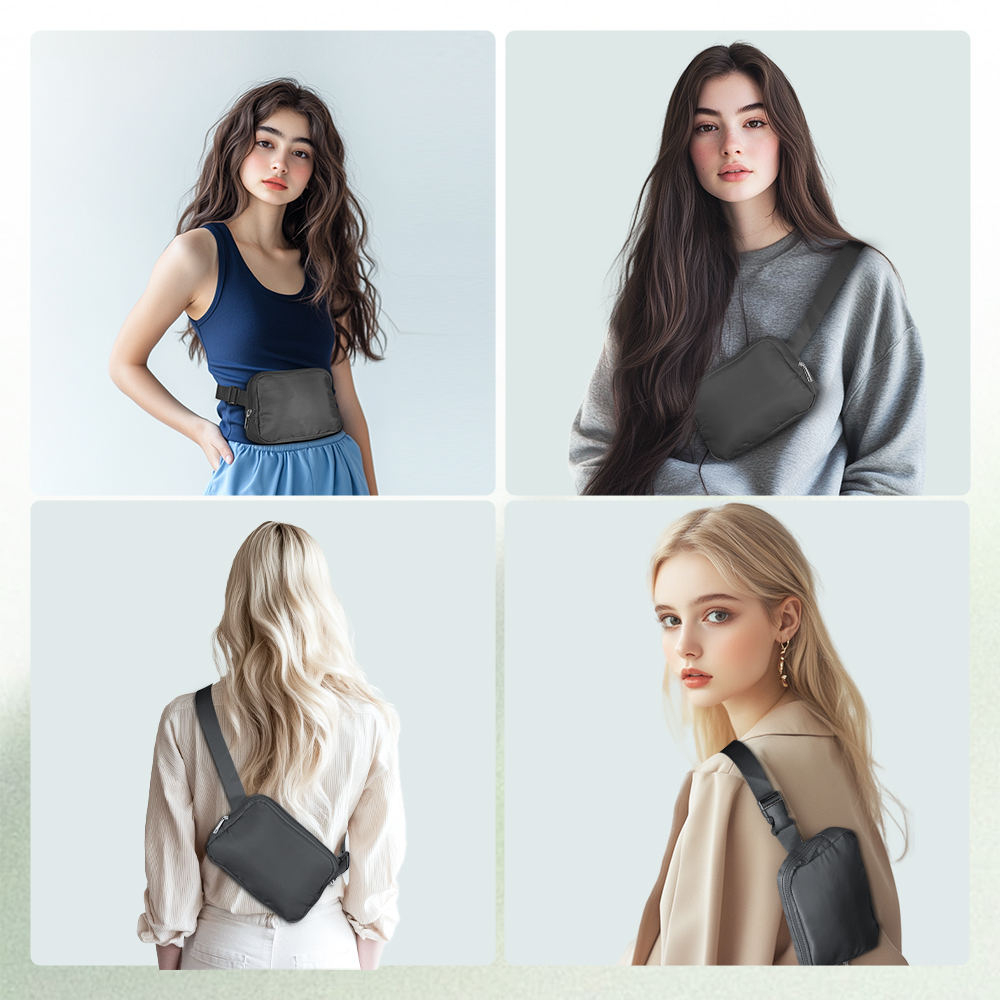 - La correa ajustable le permite ajustar la longitud de la riñonera depende de su demanda. Además, el banano cruzado le permite llevarse de distintas formas y liberar sus manos, como usarlo alrededor de la cintura, sobre el hombro o cruzado. La cremallera suave es más cómoda de usar.