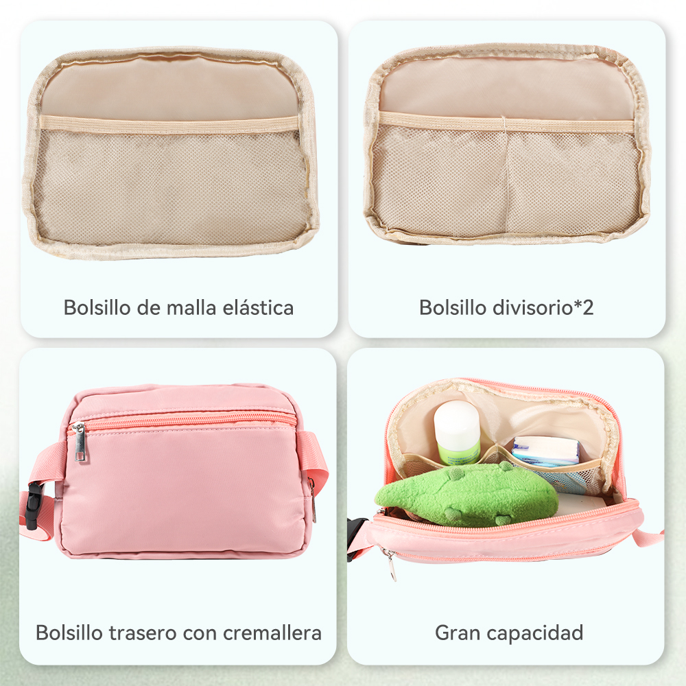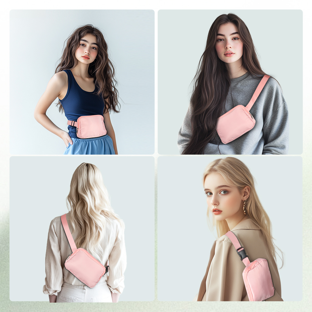 - La correa ajustable le permite ajustar la longitud de la riñonera depende de su demanda. Además, el banano cruzado le permite llevarse de distintas formas y liberar sus manos, como usarlo alrededor de la cintura, sobre el hombro o cruzado. La cremallera suave es más cómoda de usar.