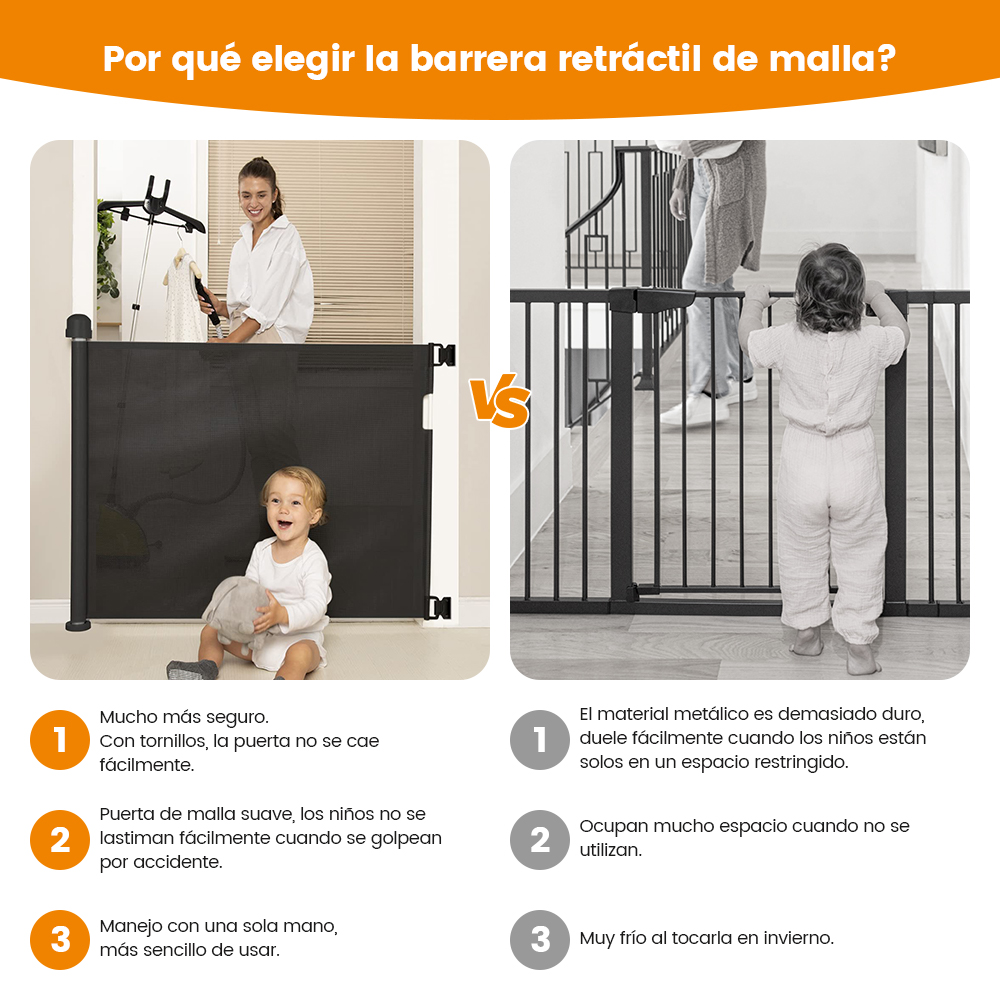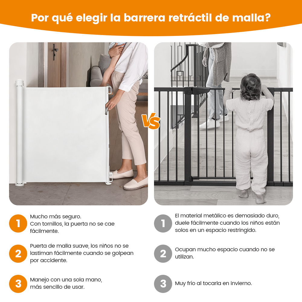 Puerta Retráctilde Seguridad de Malla para Niños y Mascotas