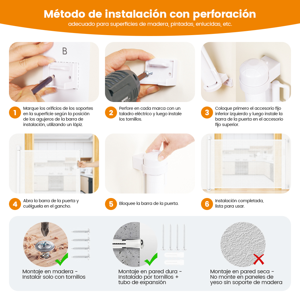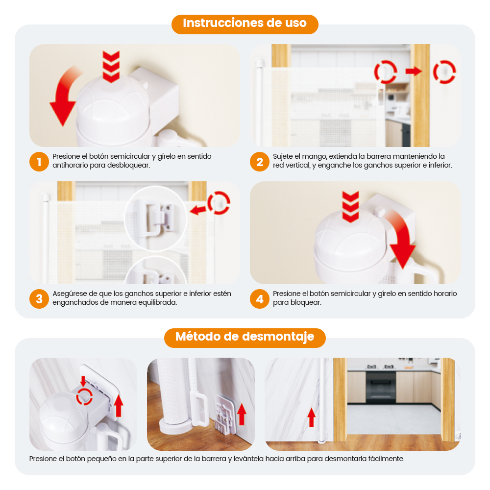5.Por favor, instale las puertas seguras para bebés/mascotas de acuerdo con la instrucción.