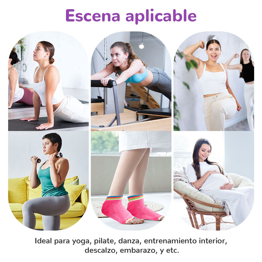 - Los calcetines de yoga antideslizantes son adecuados para muchas ocasiones, como yoga, pilates, ballet, artes marciales, gimnasia, baile y muchas otras actividades relacionadas con el fitness. También son ideales para fisioterapia, hospital, cuidado de personas mayores, embarazo y más.