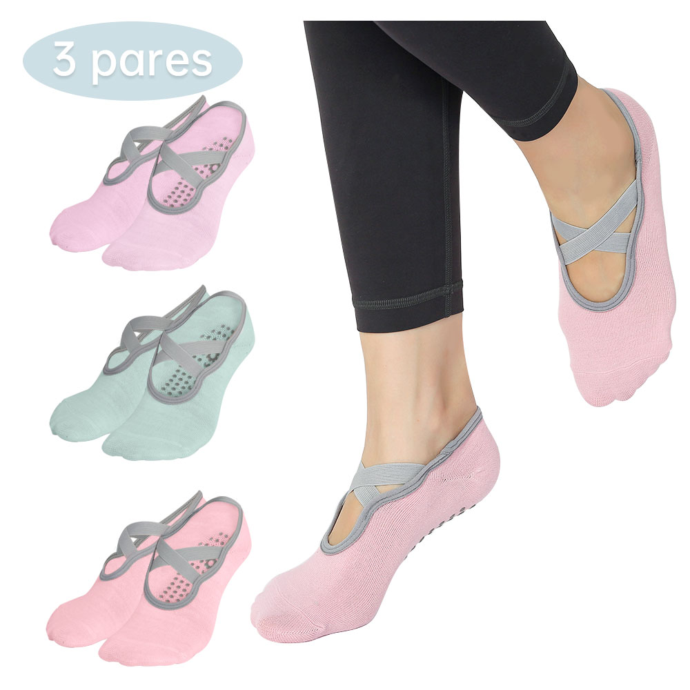 Set de 3 pares de calcetines antideslizantes, perfectos para hacer tus ejercicios sin correr el riesgo de caídas.