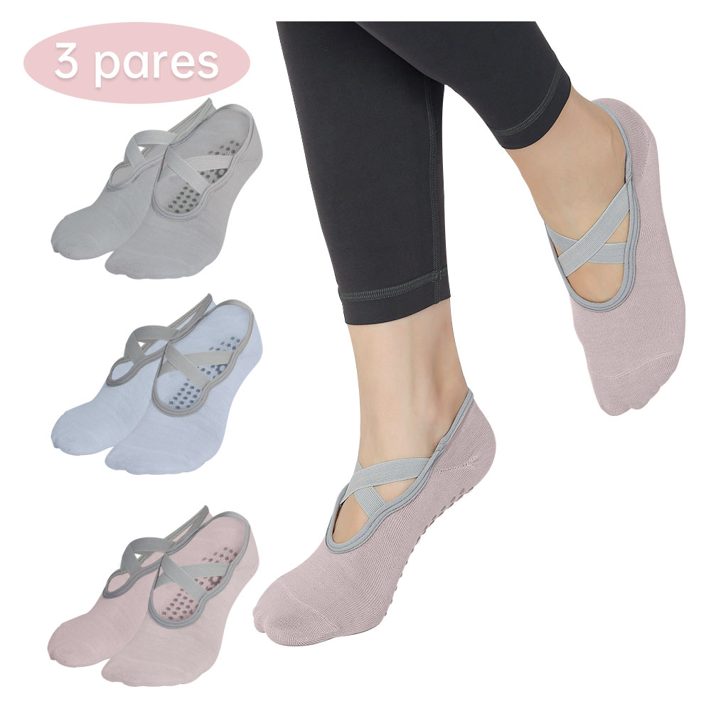 Calcetines Antideslizantes Yoga Pilate Set 3 Pares Transpirables