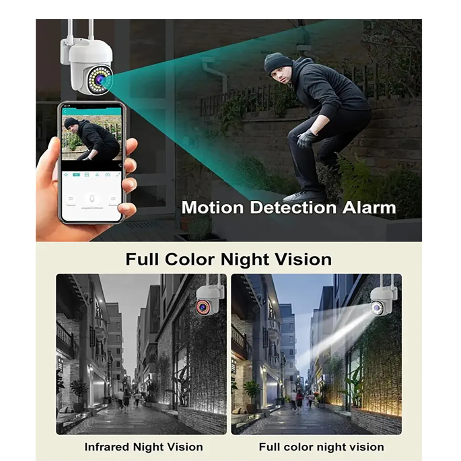 Esta Cámara impermeable al aire libre es tecnología completa de la solución de WiFi 1080P HD y la lente superior de la luz de la cámara con los sensores de movimiento excelentes, incluso en la noche puede exhibir una mejor visión nocturna a todo color. Cámara HD Puede proporcionar una imagen clara. Puede usar la aplicación para controlar el ángulo de visión de la cámara. (Gira 355 ° horizontalmente y 90 ° verticalmente.)