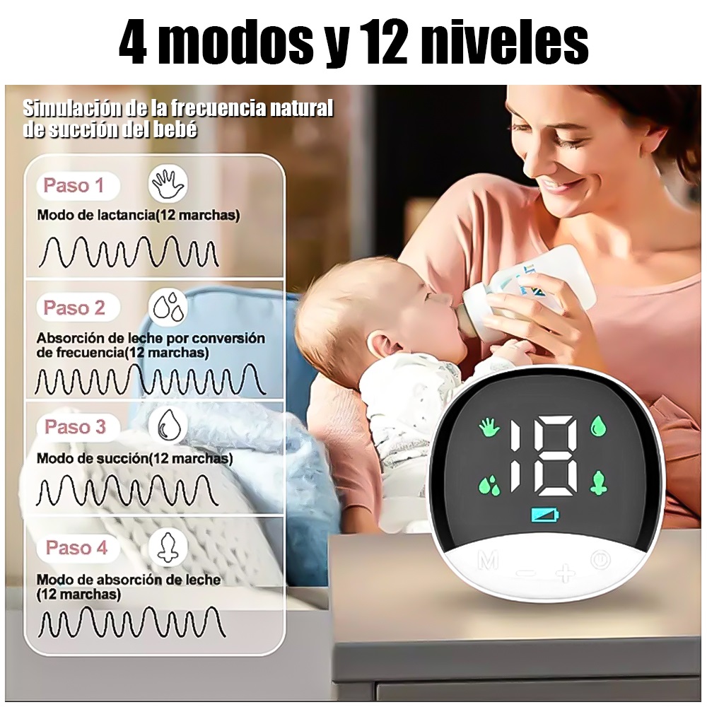 Con 4 modos de extracción de leche y 12 niveles de intensidad ajustables para cada modo: modo de lactancia、 absorción de leche por conversión de frecuencia、modo de succión、modo de absorción de leche, los usuarios pueden elegir el modo y el nivel de intensidad más adecuados según sus preferencias para obtener la mejor experiencia.