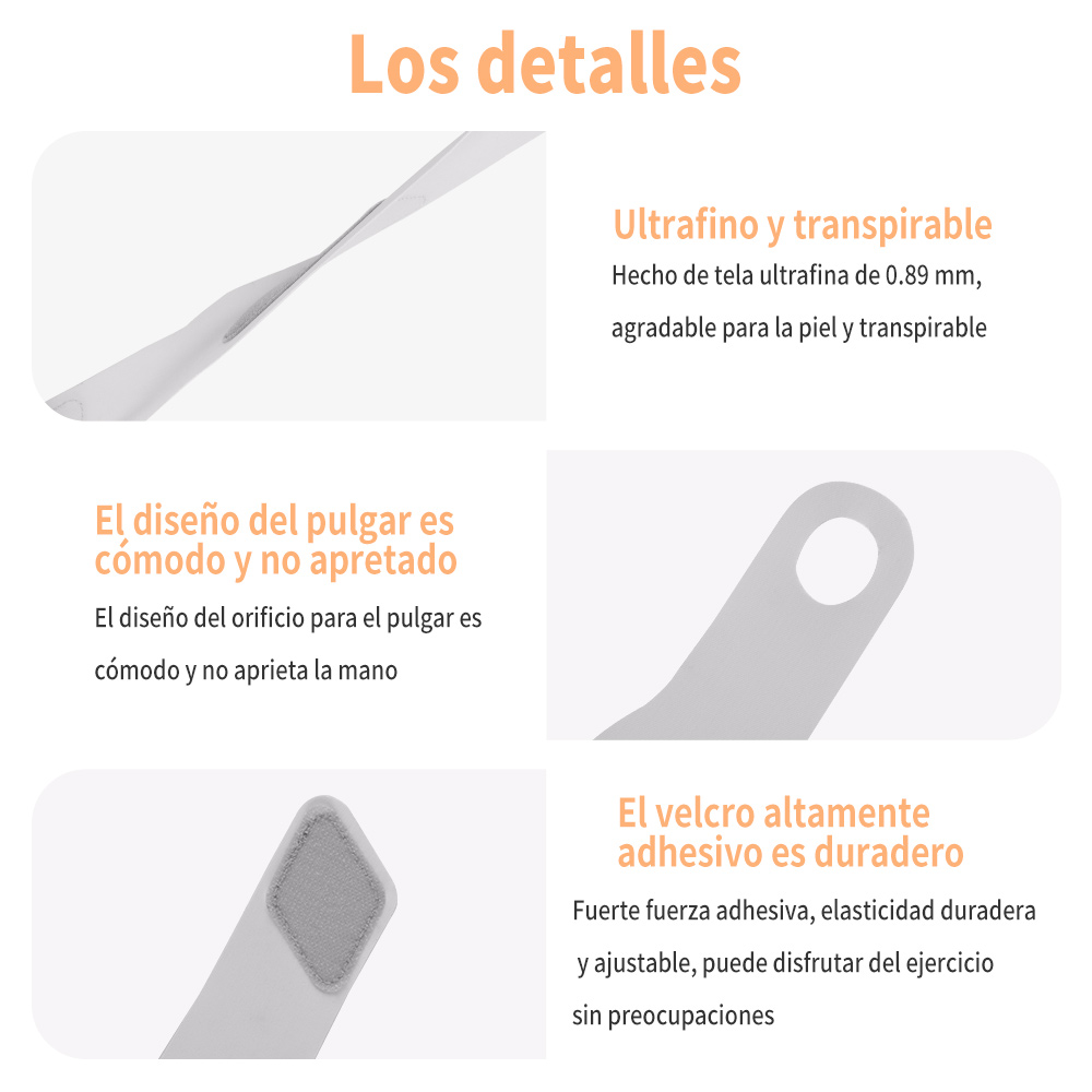 El pulgar hace que la muñequera envolvente, fácil de poner y quitar con sólo fijar el el dedo orificio en el pulgar y luego el vendaje de la parte posterior de la mano para la palma.