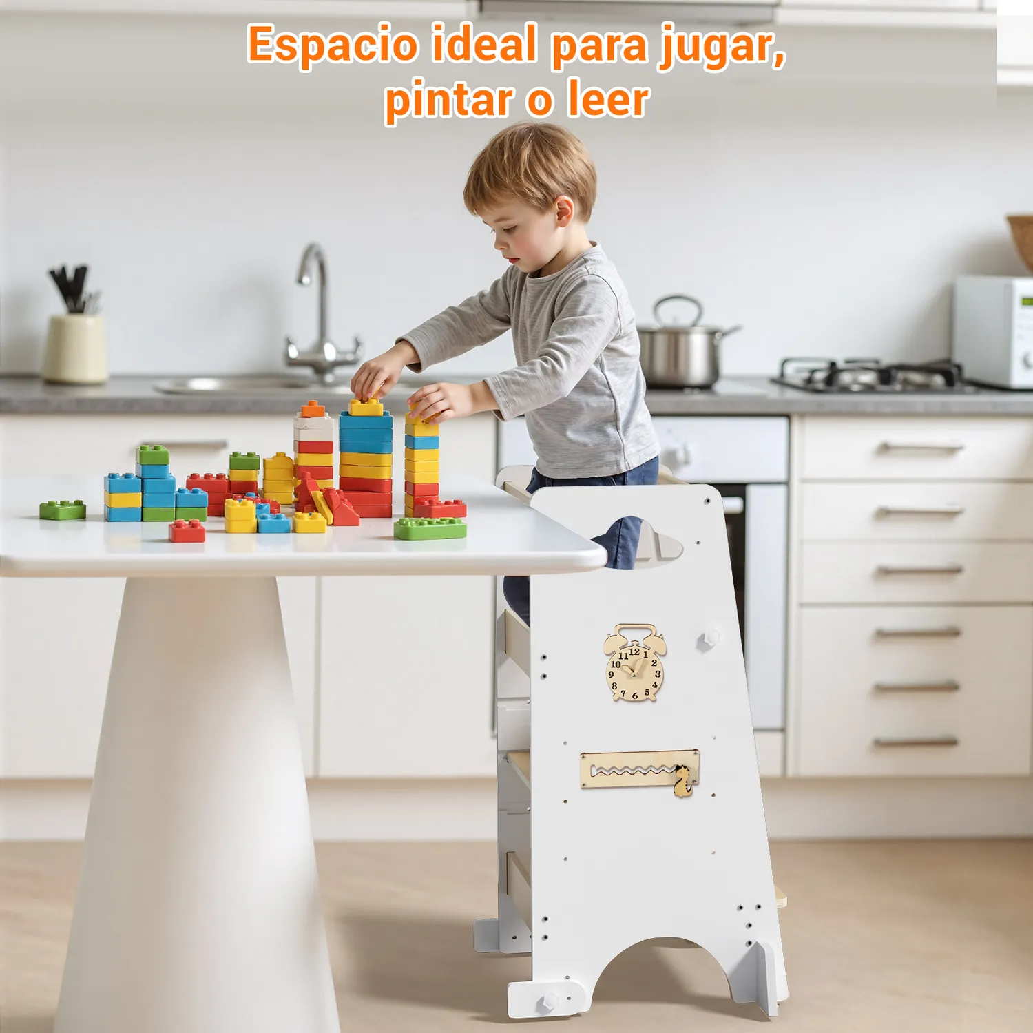 - Fomenta la independencia: Ideal para enseñar a los niños a lavarse las manos, cepillarse los dientes, cocinar, estudiar o jugar de manera autónoma, ayudando a desarrollar su autosuficiencia.